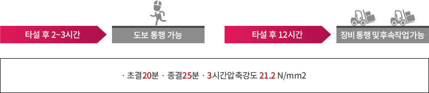아울러 뛰어난 강도와 부착성으로 카트와 인원의 이동이 많은 실내 유통 매장이나 차량의 이동이 많은 도로 및 주차장, 중량물을 적재, 가공, 운반하는 각종 공장 및 물류센터의 콘크리트 바닥 파손 및 균열 부위 보수에 탁월한 제품입니다.