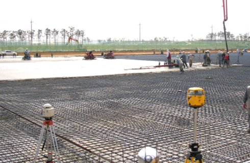 콘크리트 타설부위에 사각지역이 최소화 되도록 Laser Level 장비를 설치하고 F/L 레벨과 Con’c 면고르기 공구에 장착한 Senser가 같도록 Setting합니다.