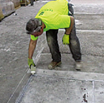 - B. 글루 건으로 콘크리트에 strip을 접착시키고 에폭시 terrazzo 시공 전 콘크리트에 strip을 좀 더 단단히 부착시키기 위해 에폭시를 strip의 바닥 면 테두리에 조금씩 흘려주고 양생.