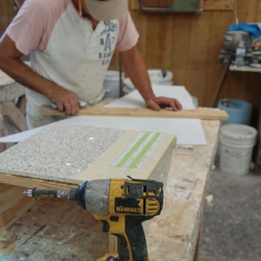 - B. 각 색상의 terrazzo를 지정된 구간에 타설.