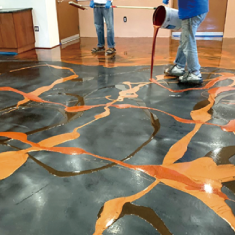 -지정된 마감 색상에 따라 유색 프라이머의 주제와 경화제를 혼합 후 바닥에 시공합니다.